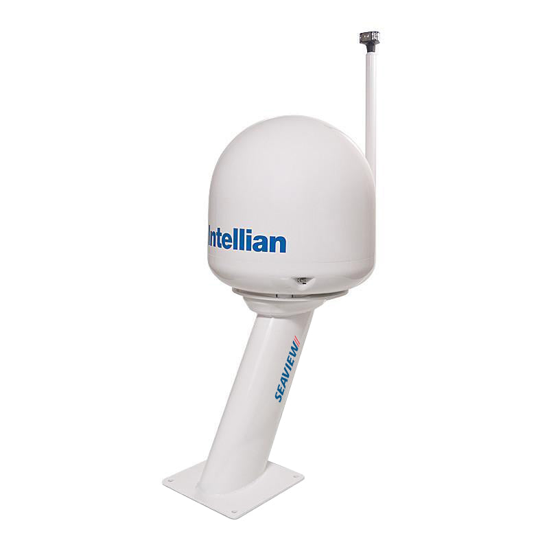 The 18" tall Seaview aft leaning mount for Satdomes (18"-24" diameter). The oval hollow mast section allows for easy cable management. The small 10"x10" foot print design is a great solution for limited space. This modular mount is light bar compatible. Numerous accessories are also available for this mount such as wedges, hinges, spreaders, lightbars and floodlights. *Please note that a Top Plate is required (sold separately)*