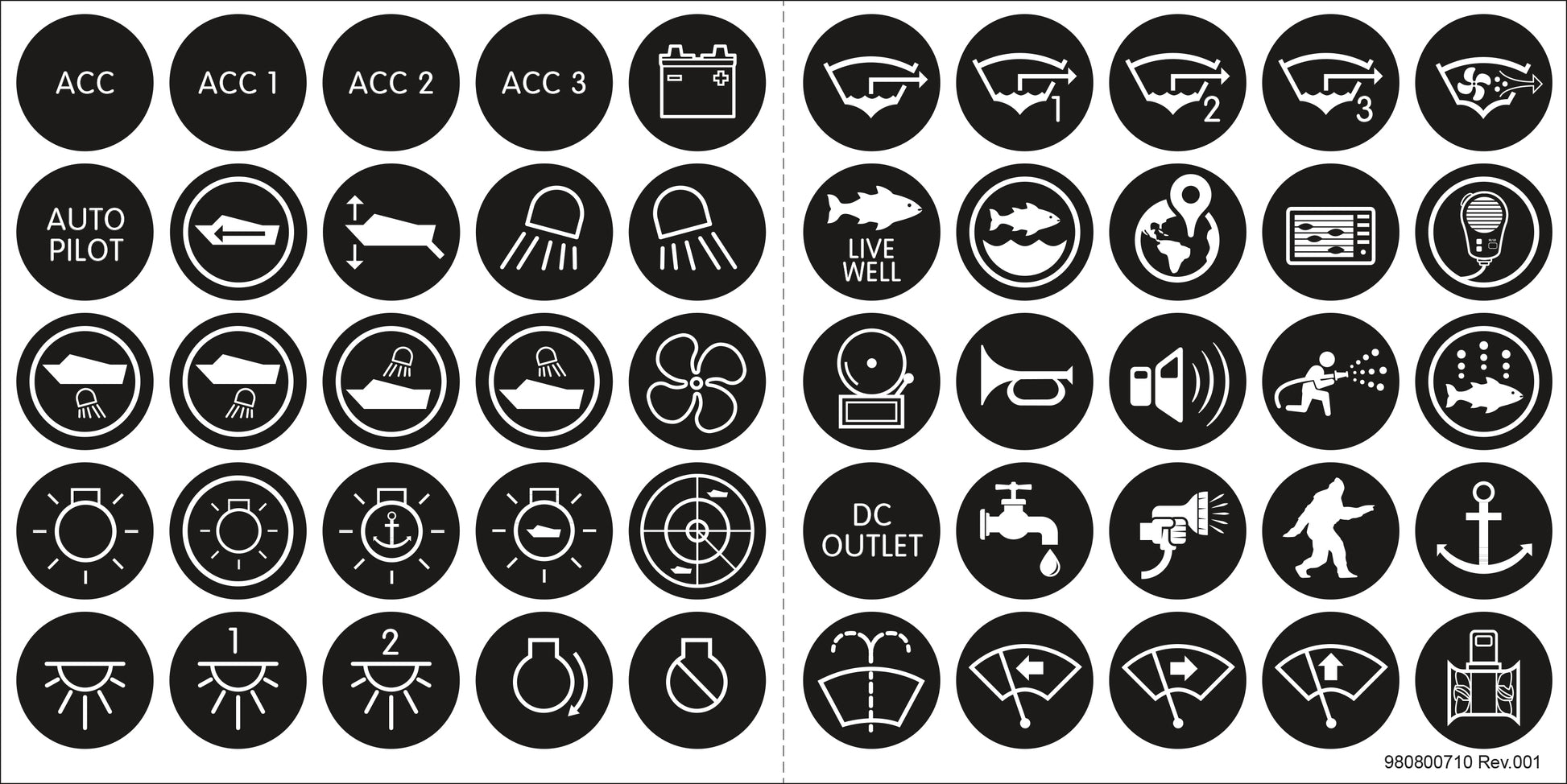 Model: 4230-BSS- 50 ICON Labels used on Backlit Push Button Switches