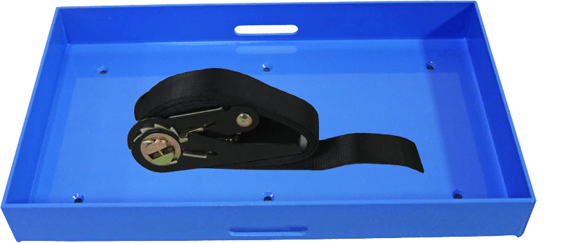 Trays Include: Tray Bottom, 3mm rubber protector pad, Ratchet Strap, (6) Install screws