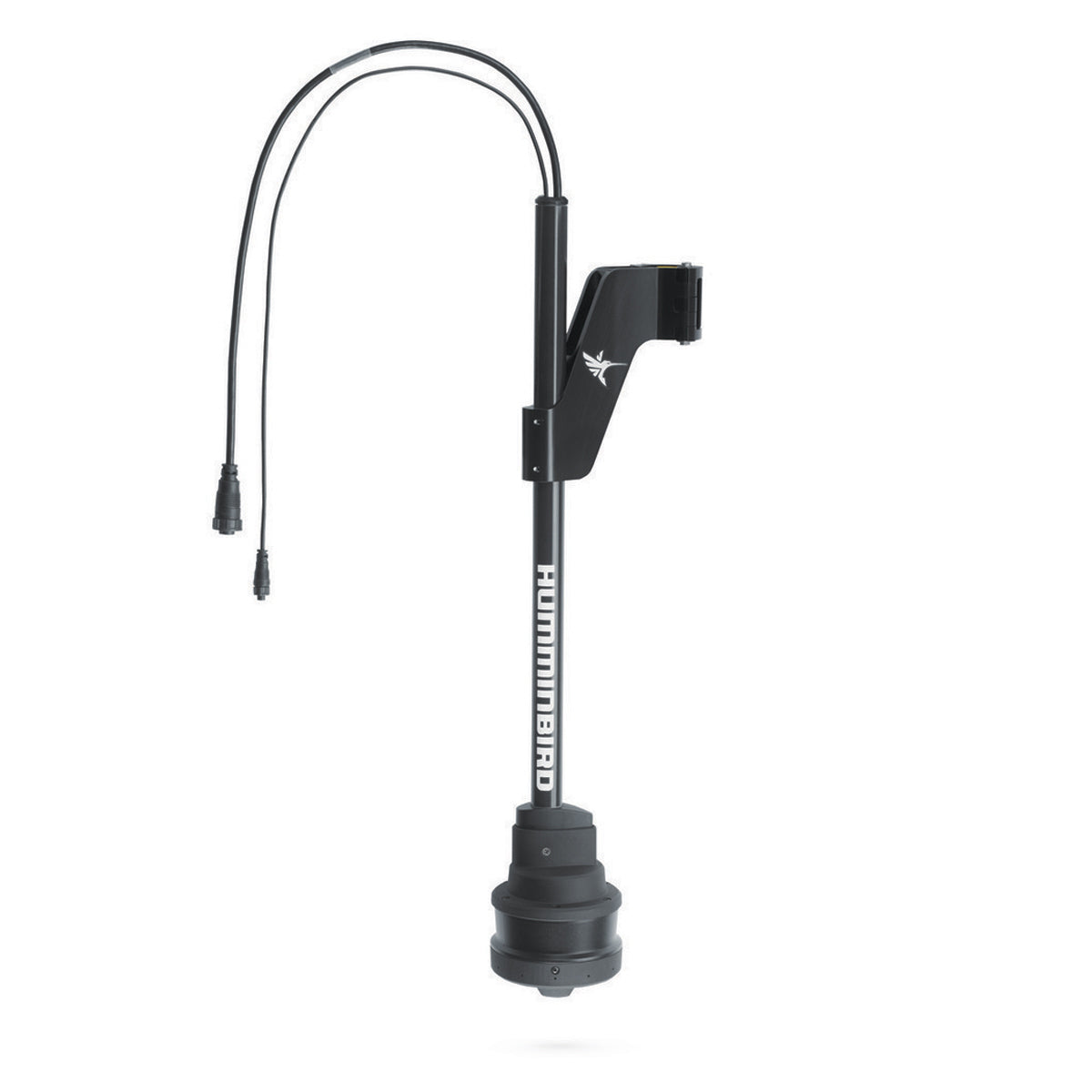 - Ultrex bow-mount MEGA360 Imaging transducer with attached power cable and transducer cable
