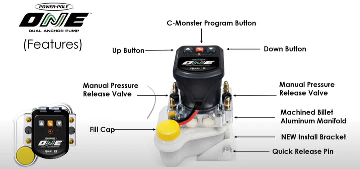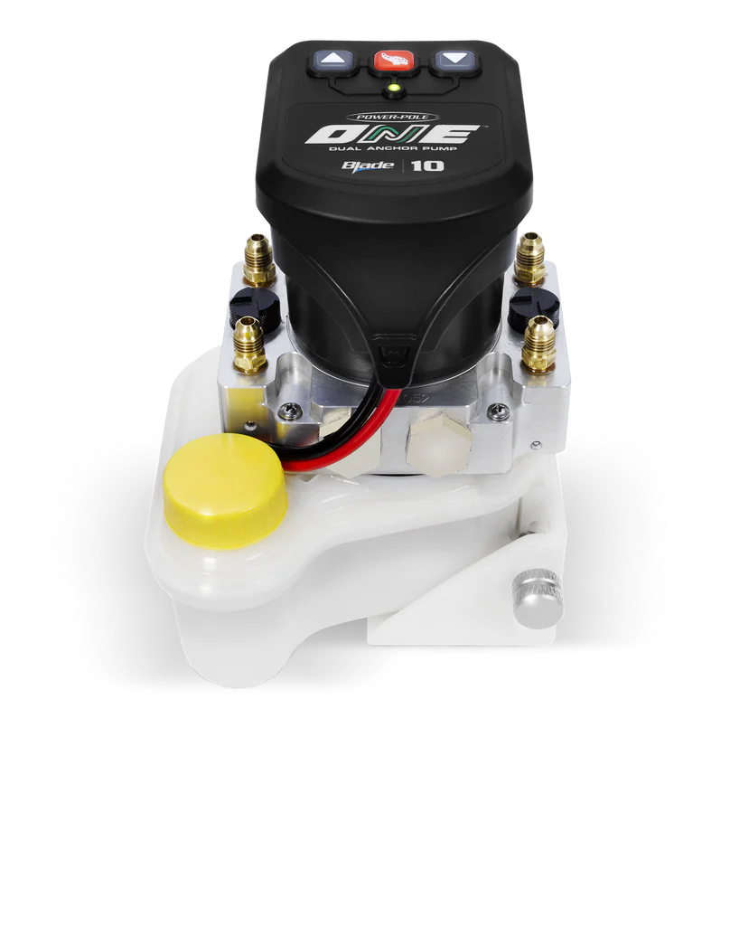 Introducing the new Power-Pole ONE Pump, strong enough to power dual shallow water anchors smoother and quieter than ever before. The ONE Pump is our most advanced hydraulic system featuring our most powerful brushless motor, along with upgraded circuit board and valves. Our Dual Anchors ONE Pump package will be available on all Blade model anchors.
