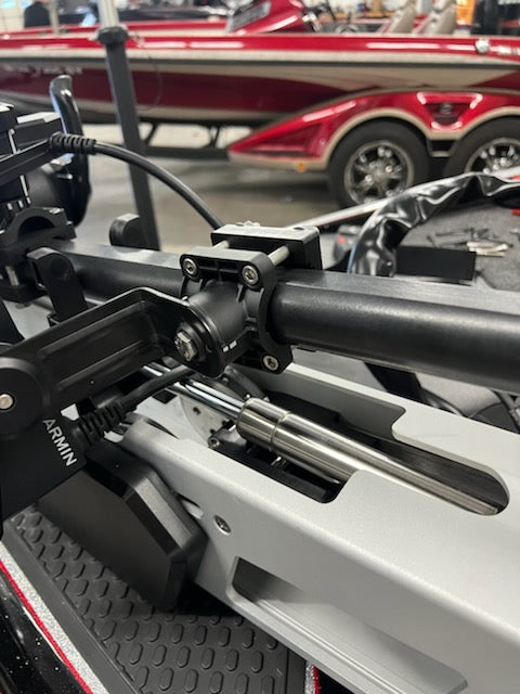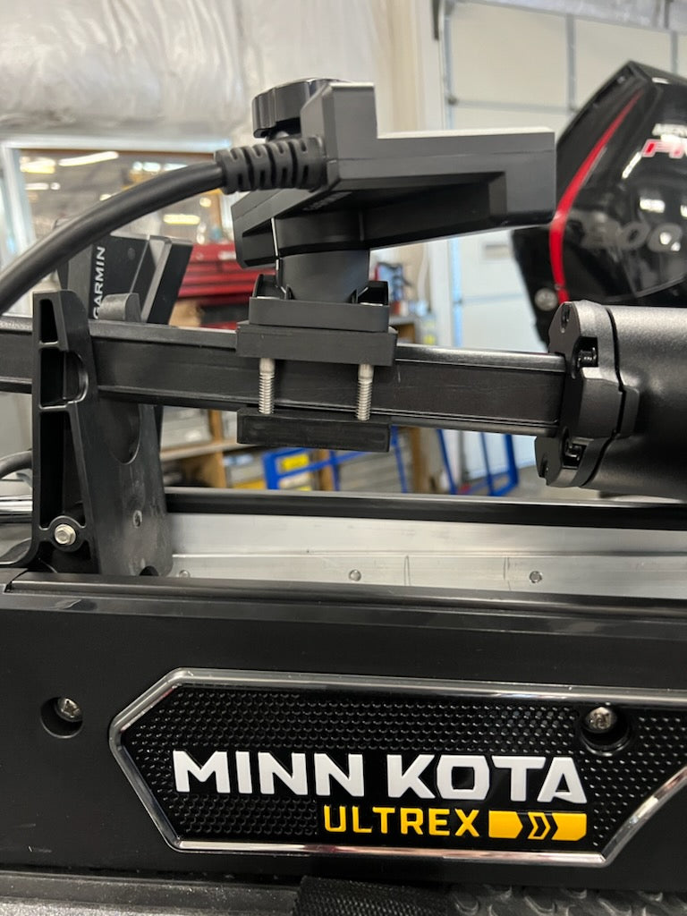 Did you purchase a new ultrex quest only to find out that your  factory LVS34 Transducer clamp bracket wont fit or tighten down without slipping due to the new shaft profile of the Ultrex Quest?  K and K Kustomz has your solution ..